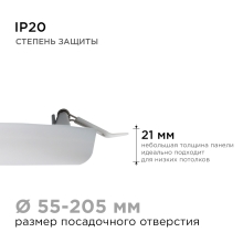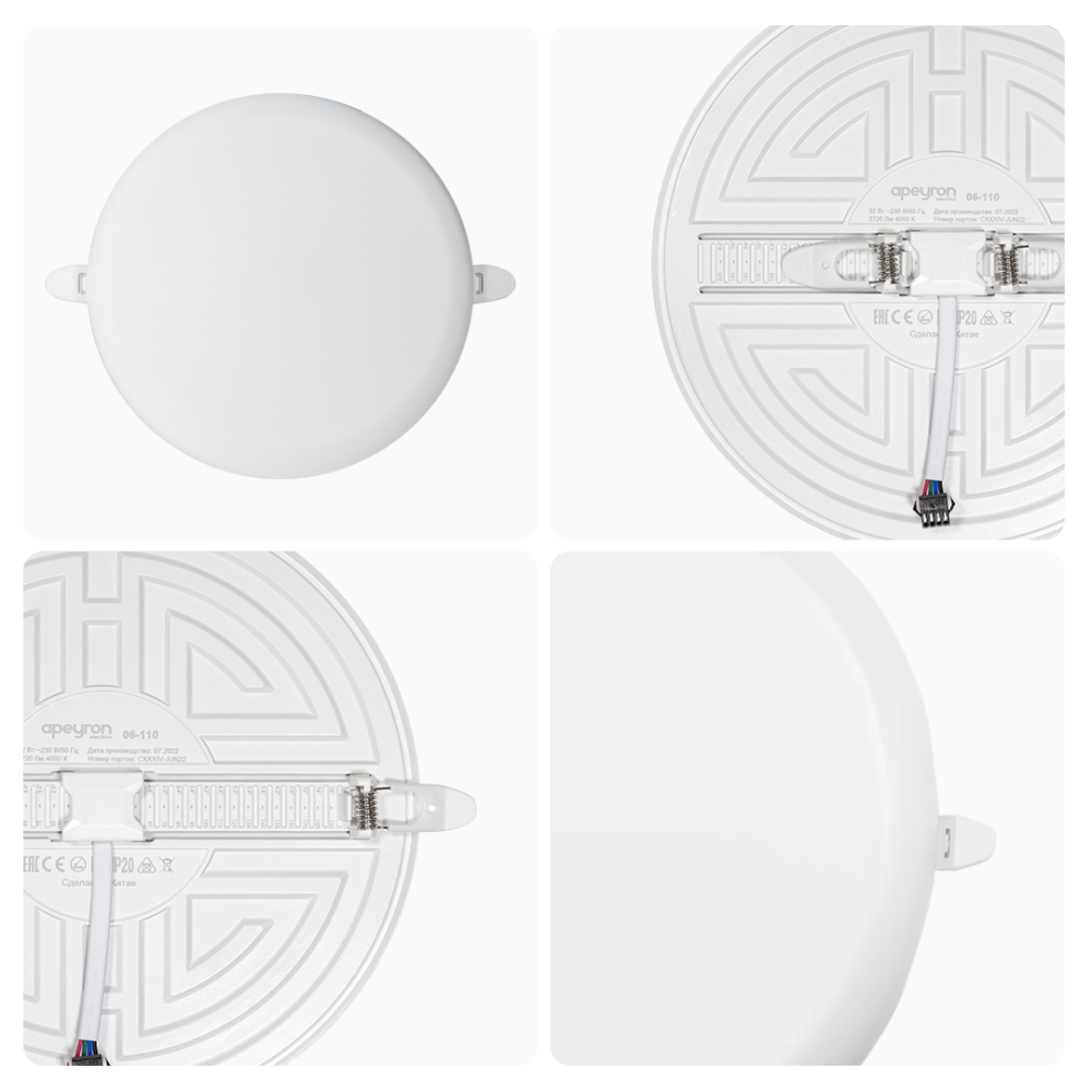 Светильник встраиваемый APEYRON безрамочный FLP, 32Вт (24Вт+8Вт), 2720лм, 4000К, IP20, ø225х21мм, круг, 3 режима свечения, регулировка под посадочное отверстие ø55-205мм