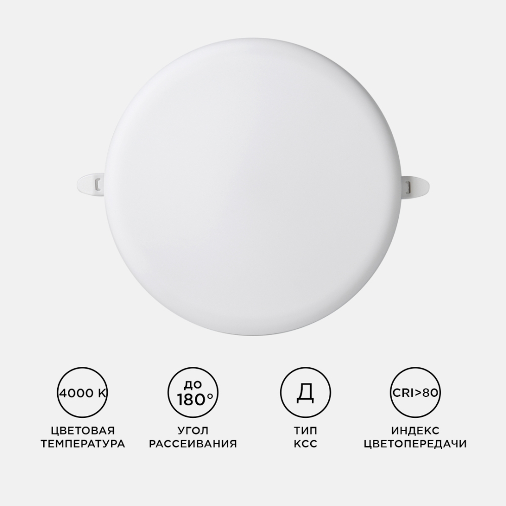 - Безрамочный дизайн плафона, угол рассеивания 180°;