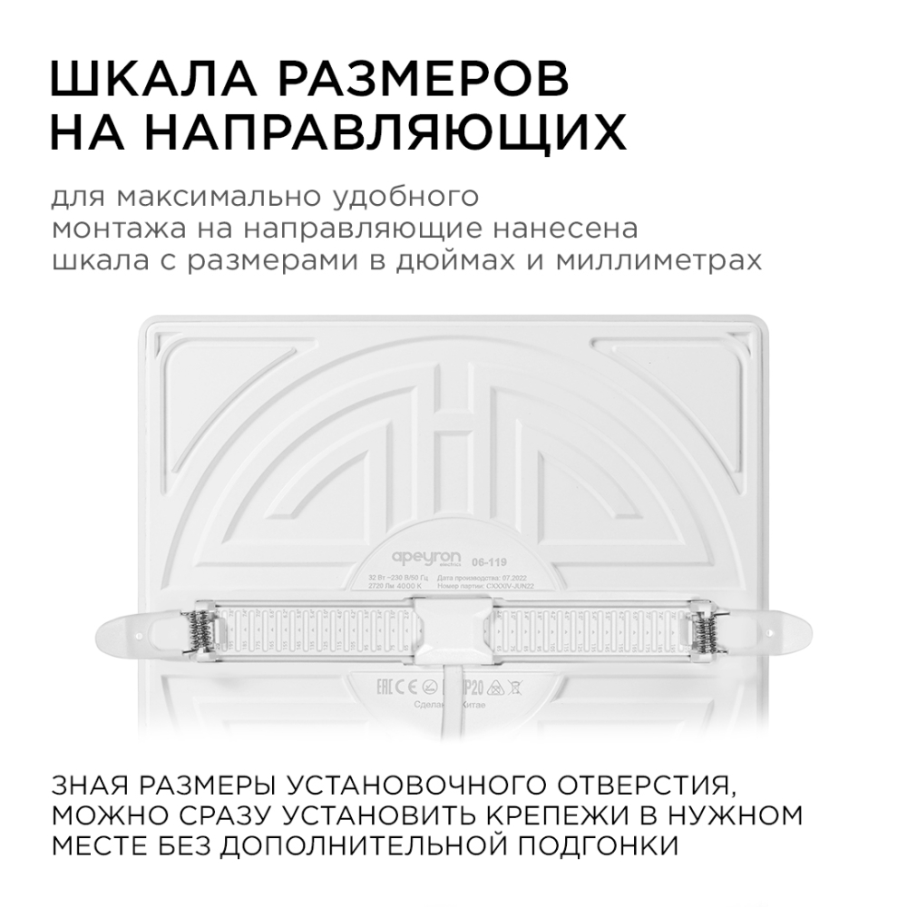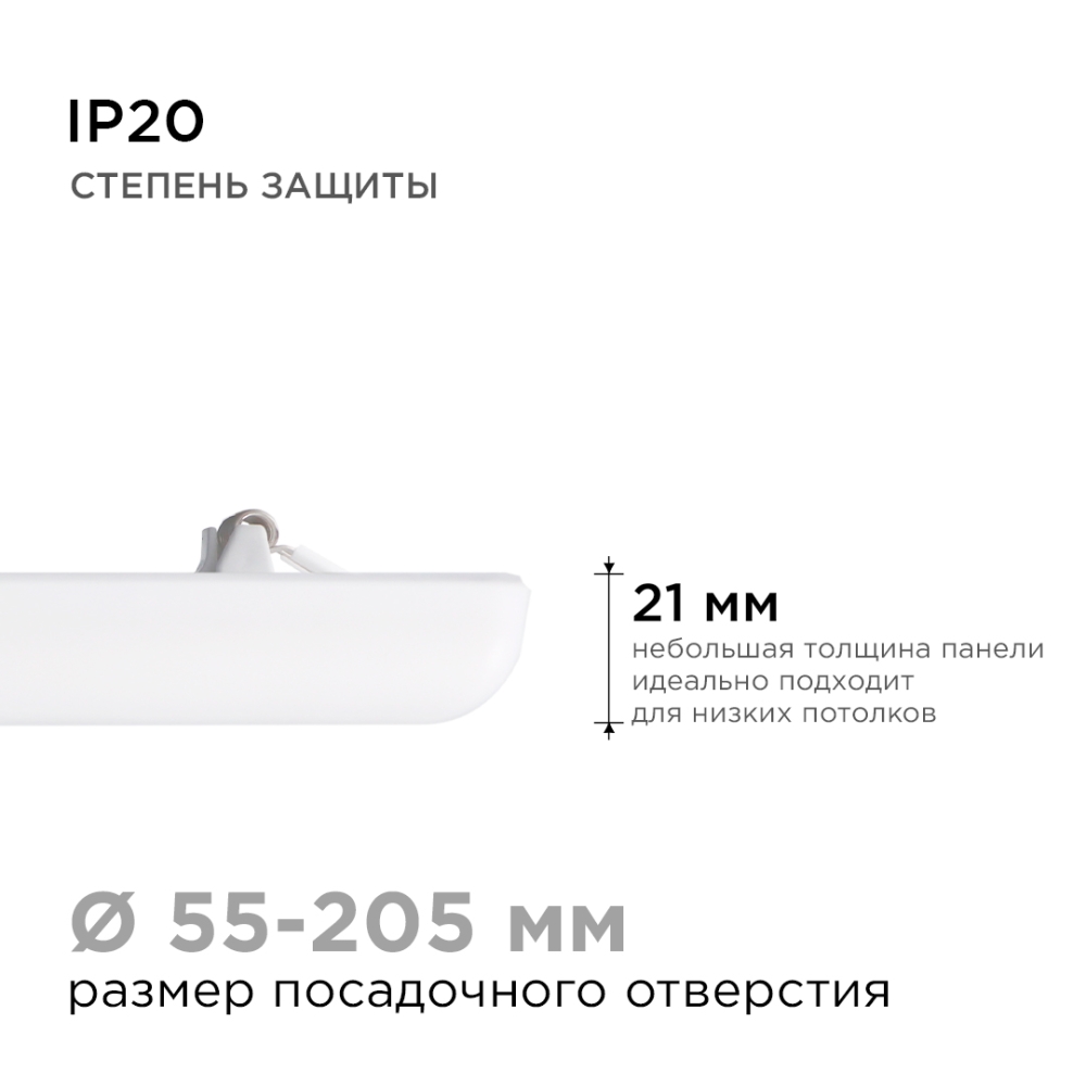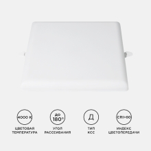 Светодиодная встраиваемая безрамочная панель 06-119 излучает световой поток в 2720 Лм, потребляя при этом 32Вт (24Вт+8Вт), что в итоге дает энергоэффективность 85 Лм/Вт. Особенностью данного изделия является 3-х ступенчатая регулировка уровня освещенности путем нажатия клавиши выключателя: 1) освещение всей поверхности плафона, угол рассеивания 180°; 2) концентрированное освещение внутреннего диаметра, угол рассеивания 120°; 3) засветка торцевой части панели, эффект «кольцевого освещения». Вторая особенность панели – регулировка крепежных зажимов под посадочное отверстие Ø55-205 мм. Третья особенность – безрамочный дизайн плафона, благодаря чему возможна повышенная освещенность с углом рассеивания 180°. Размер изделия 225х225х21мм. Цветовая температура 4000К наиболее близка к естественному солнечному свету. Отдельный от корпуса драйвер имеет компактный размер. А благодаря удобному коннектору для соединения со светильником может быть легко заменен. Панель по способу монтажа является встраиваемой.