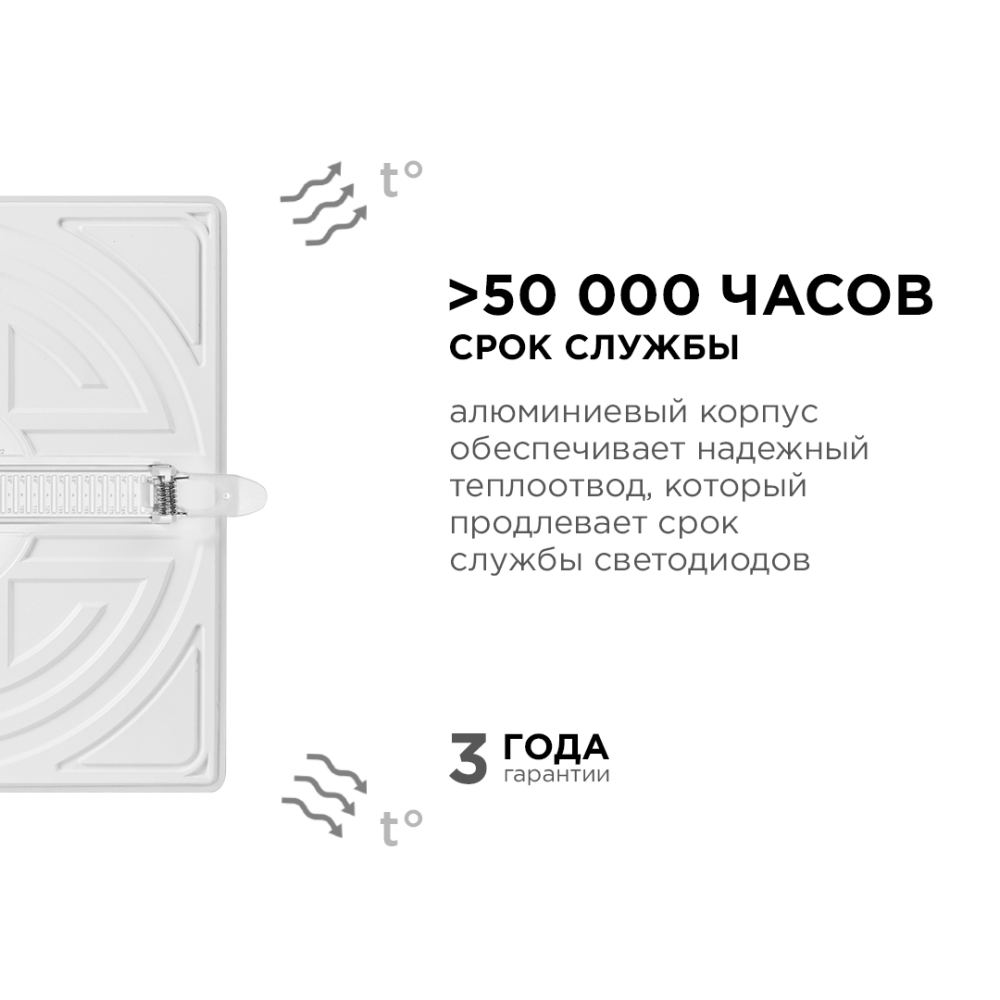 - Безрамочный дизайн плафона, угол рассеивания 180°;