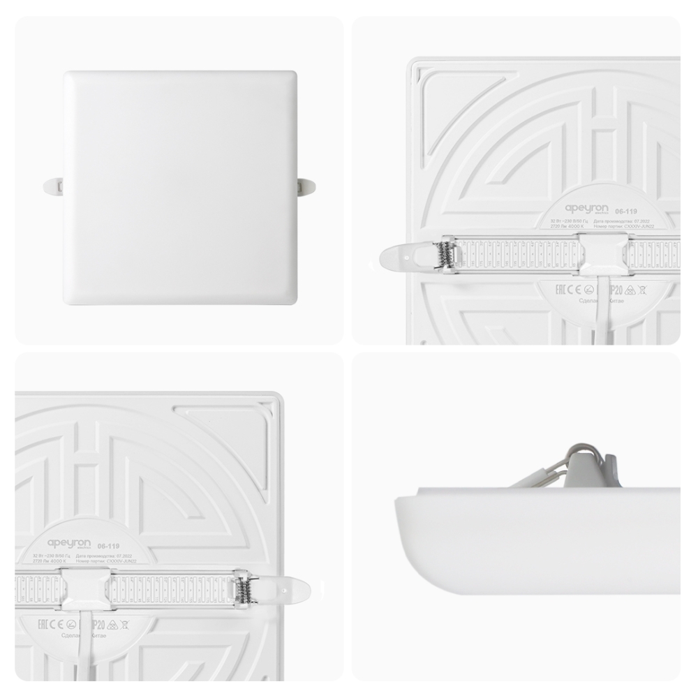 Светильник встраиваемый APEYRON безрамочный FLP, 32Вт (24Вт+8Вт), 2720лм, 4000К, IP20, 225х225х21мм, квадрат, 3 режима свечения, регулировка под посадочное отверстие ø55-205мм