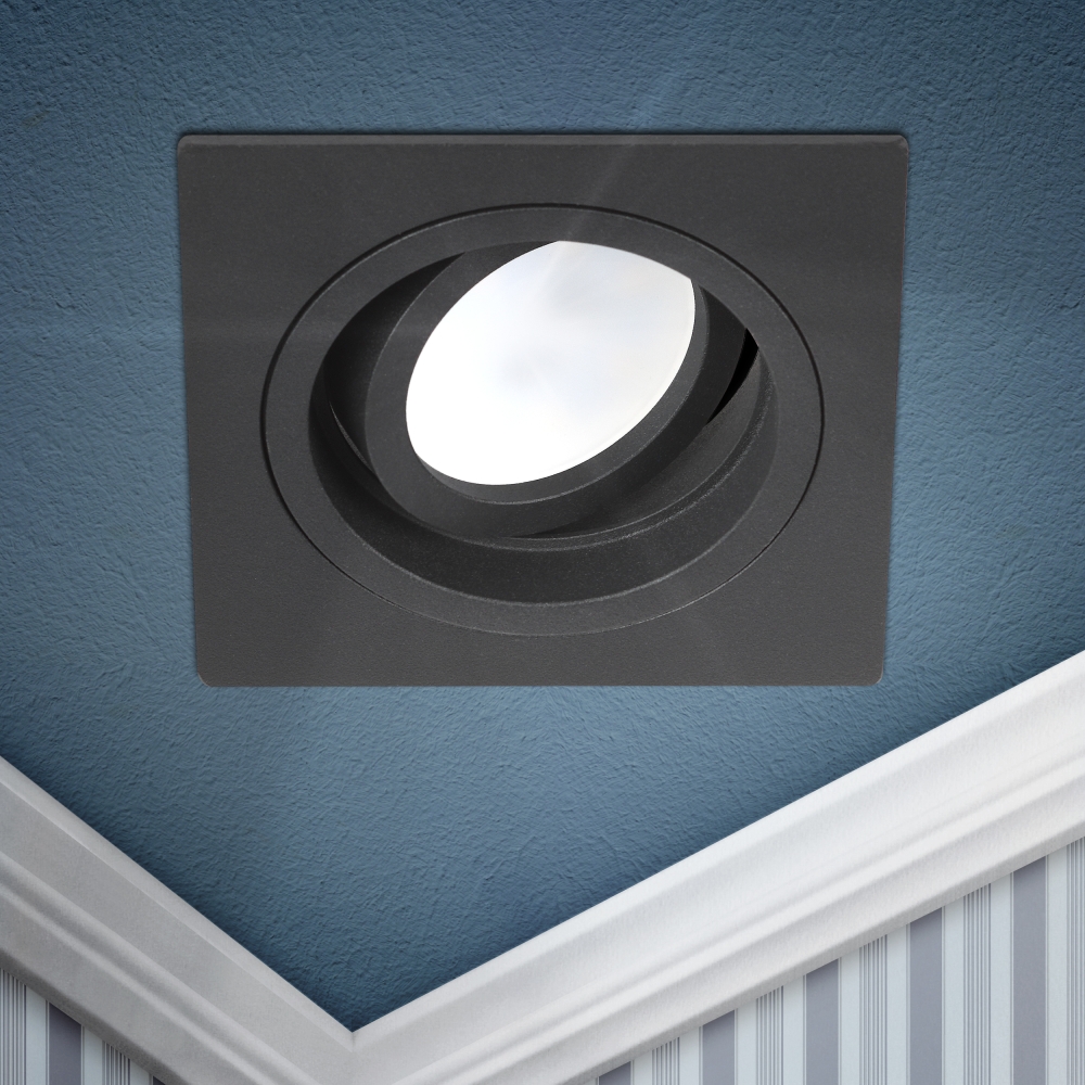 Светильник встраиваемый поворотный MR16/GU5.3 ЭРА металл KL85 BK квадрат черный