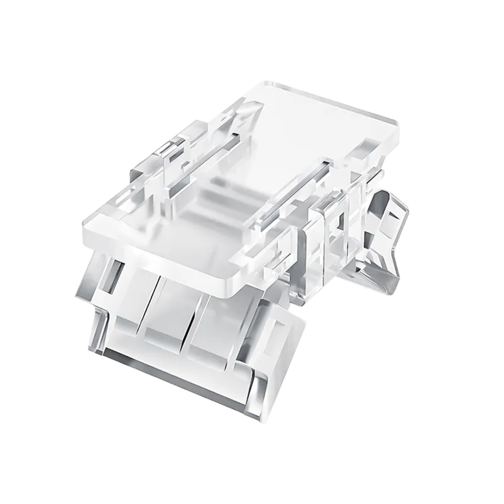 С помощью коннектора можно обеспечить жесткое соединение типа I (прямое). Тип разъема коннектора – 2 pin. Компактный размер изделия 16,5х9,7х4,3 мм позволяет монтировать ленту с коннектором в узкий профиль.