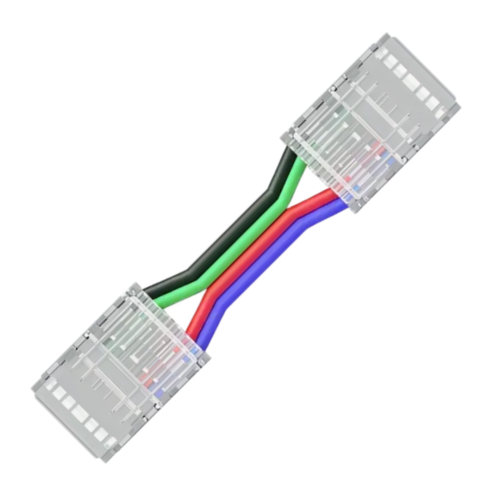 С помощью коннектора можно обеспечить гибкое соединение двух отрезков ленты. Длина провода 150 мм. Тип разъема коннектора – 4 pin. Компактный размер изделия 16,5х11,7х4,3 мм позволяет монтировать ленту с коннекторами в узкий профиль.