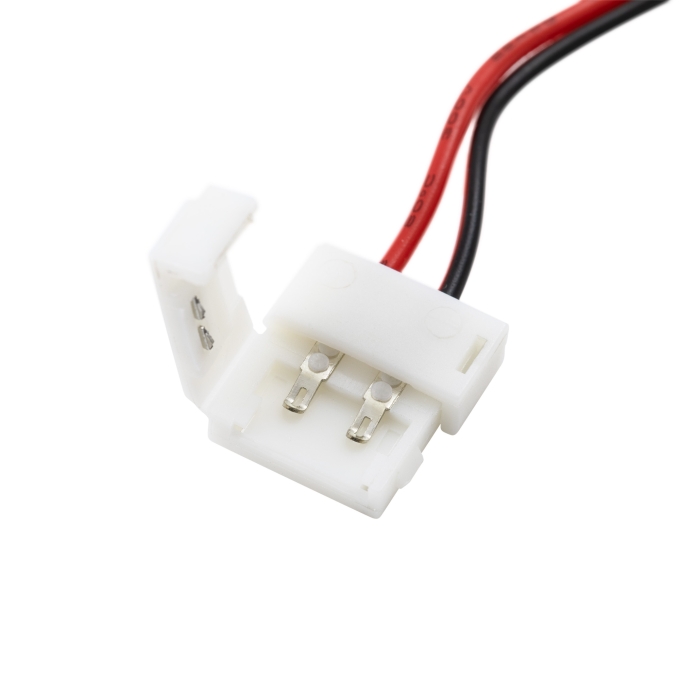 Коннектор 09-02 для монохромной светодиодной ленты с шириной подложки 10 мм служит прекрасной альтернативой в тех случаях, когда нет возможности паять. Чаще всего подложку шириной 10 мм можно встретить у ленты со светодиодами 5050, 2835. С помощью данного коннектора можно: соединить 2 отрезка светодиодной ленты, а также подключить светодиодную ленту к источнику питания.