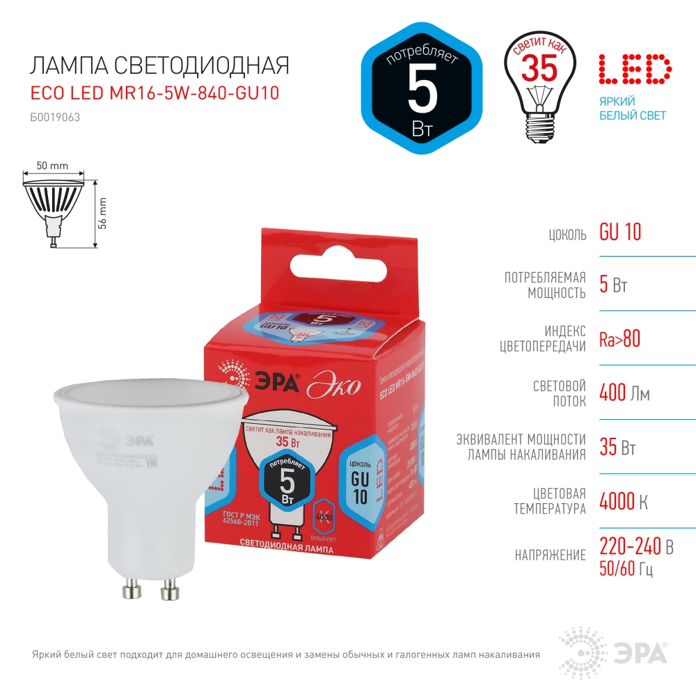 Лампа ЭРА RED LINE LED MR16-GU10-5w-840 (10)