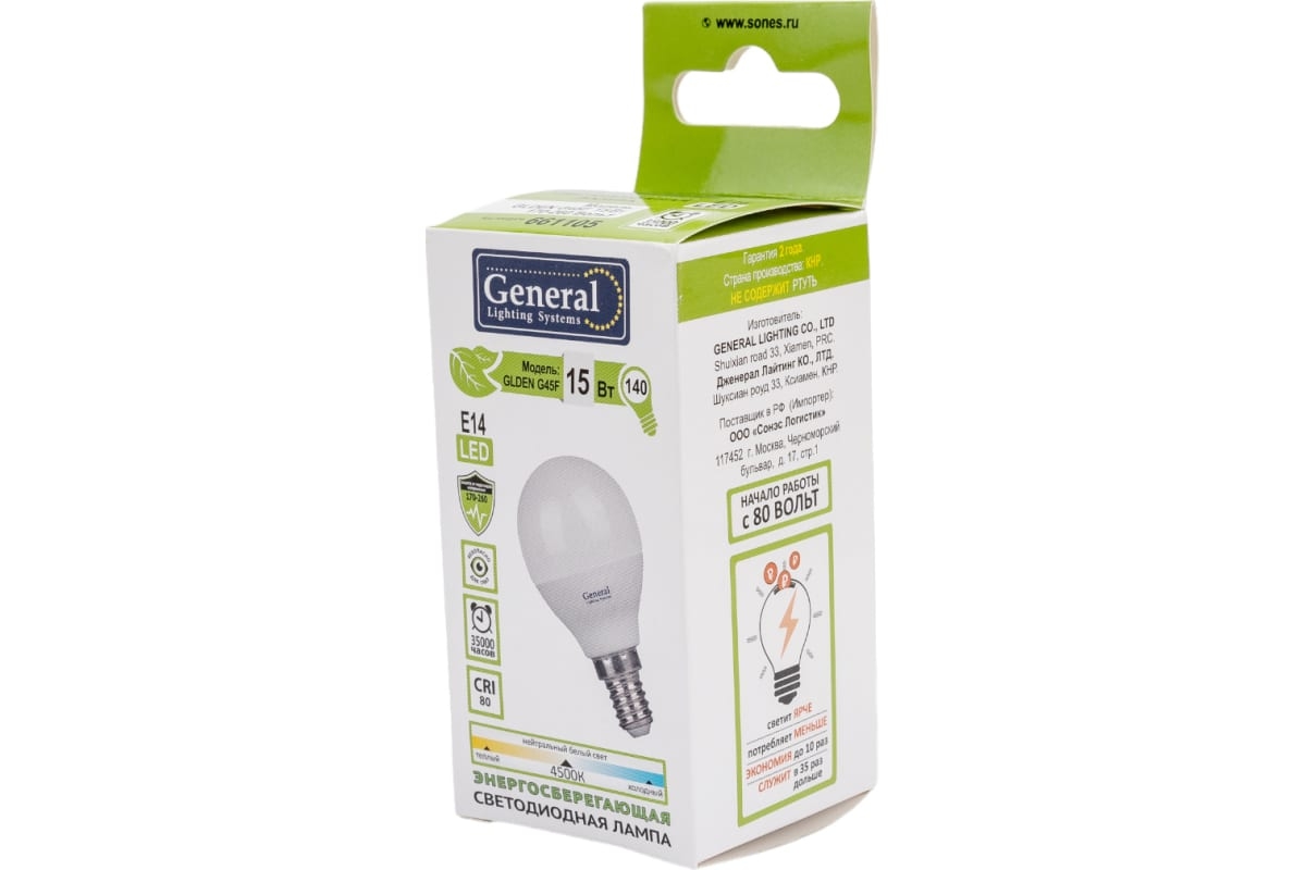 | Цветовая температура | 4500 K |
