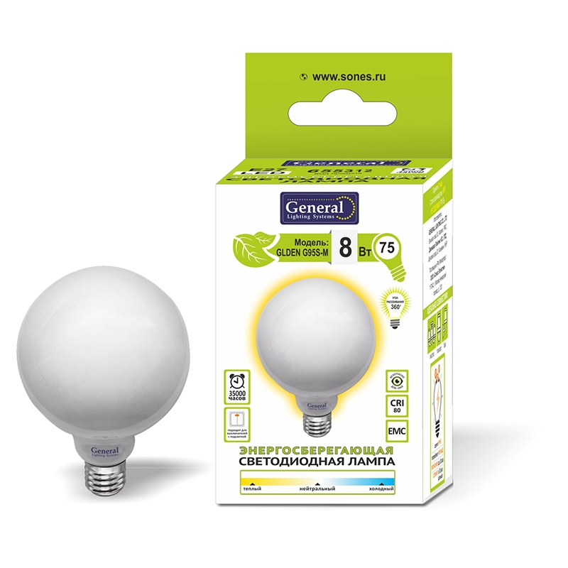 Лампа General LED-G95S-М 8Вт E27 4500K шар матовый ПРЕМИУМ АКЦИЯ