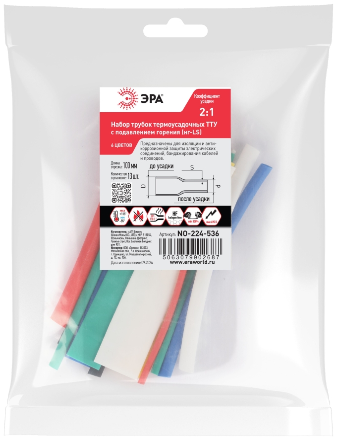 Термотрубка ЭРА набор №2 2/1 (6 цв. 13 шт. 100мм) NO-224-536