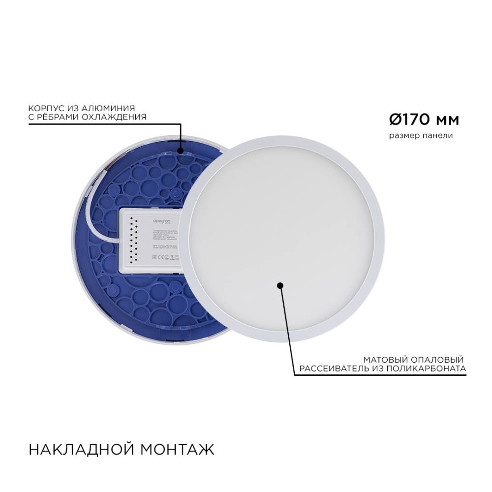 Светильник накладной APEYRON круг 18Вт 6500K Ф170мм 1440Лм