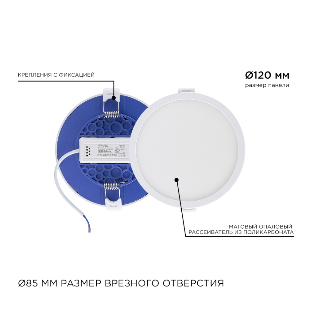 Светодиодная панель 06-18 излучает световой поток в 800Лм, потребляя при этом 10Вт, что в итоге дает энергоэффективность 80Лм/Вт. Цветовая температура 4500К наиболее близка к естественному солнечному свету и все более востребована на рынке. Встроенный драйвер снимет вопрос о том, как его разместить, и облегчит монтаж светильника. Круглая форма корпуса позволит создать дизайн с оттенками вечности, тайны и магии. Эта панель по способу монтажа является встраиваемой, а благодаря малой высоте драйвера позволит сделать пространство за потолком минимальным и подарит Вам больший объем помещения, ведь мы ценим каждый сантиметр свободного пространства наших клиентов. У данного светильника диаметр врезного отверстия 85 мм, а высота драйвера 17мм.