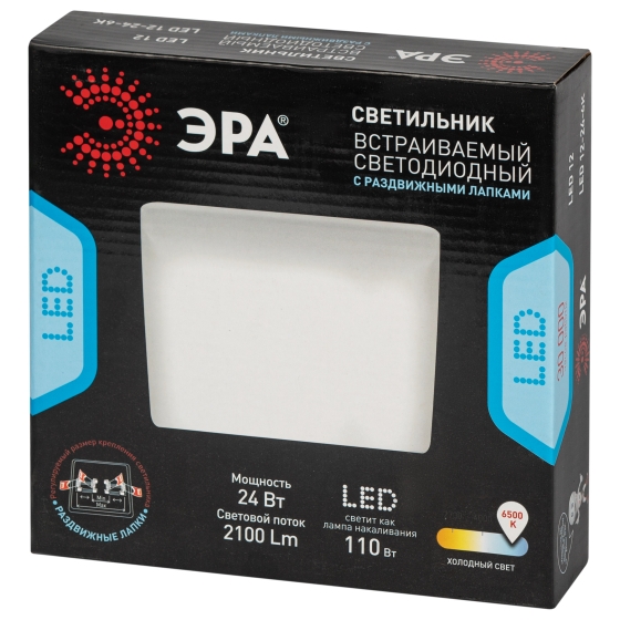 Встраиваемые точечные светильники LED 12-24-6K – прекрасное решение для самых разных помещений в Вашем доме или квартире. С помощью встраиваемых светильников можно подсвечивать от рабочего места до пространства для готовки на кухне. LED 12-24-6K выполнен из металла, отличающегося своими качеством и долговечностью. Внешний размер светильника - 170*170*21 миллиметров, а монтажный - регулируемый: 55-140 миллиметров. Степень защиты светильника - IP20, она дает возможность устанавливать его в разных помещениях, кроме тех, где повышена влажность. Тип рассеивателя - матовый, он способствует приятному и мягкому распространению света в комнате. Светильник обладает цветовой температурой в 6500К, что эквивалентно холодному свету. Световой поток точечного светильника составляет 2 100 Лм. Для данной модели не нужна лампа, LED 12-24-6K работает при помощи встроенных светодиодов, срок службы которых составляет 30 000 часов. Мощность составляет 24 Вт. Светильник белого цвета, благодаря чему его можно размещать в самых разных по стилю интерьерах: минимализм, хай-тек, модерн, прованс или скандинавский. После установки Ваша комната преобразится и наполнится приятной атмосферой.