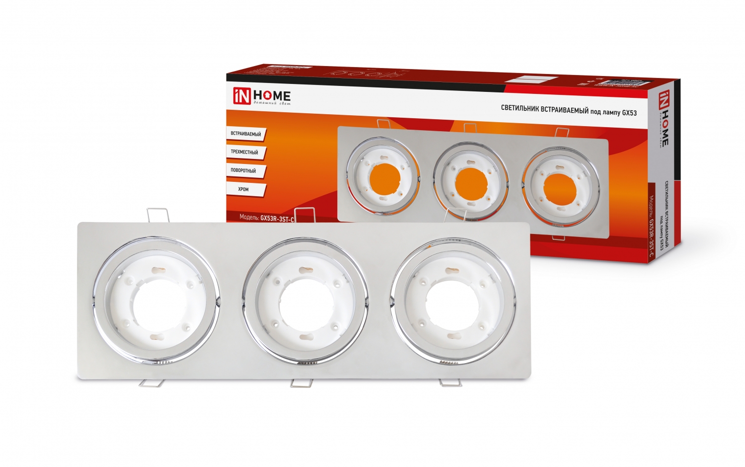 Светильник встраиваемый поворотный IN HOME GX53R-3ST-C металл, тройной хром