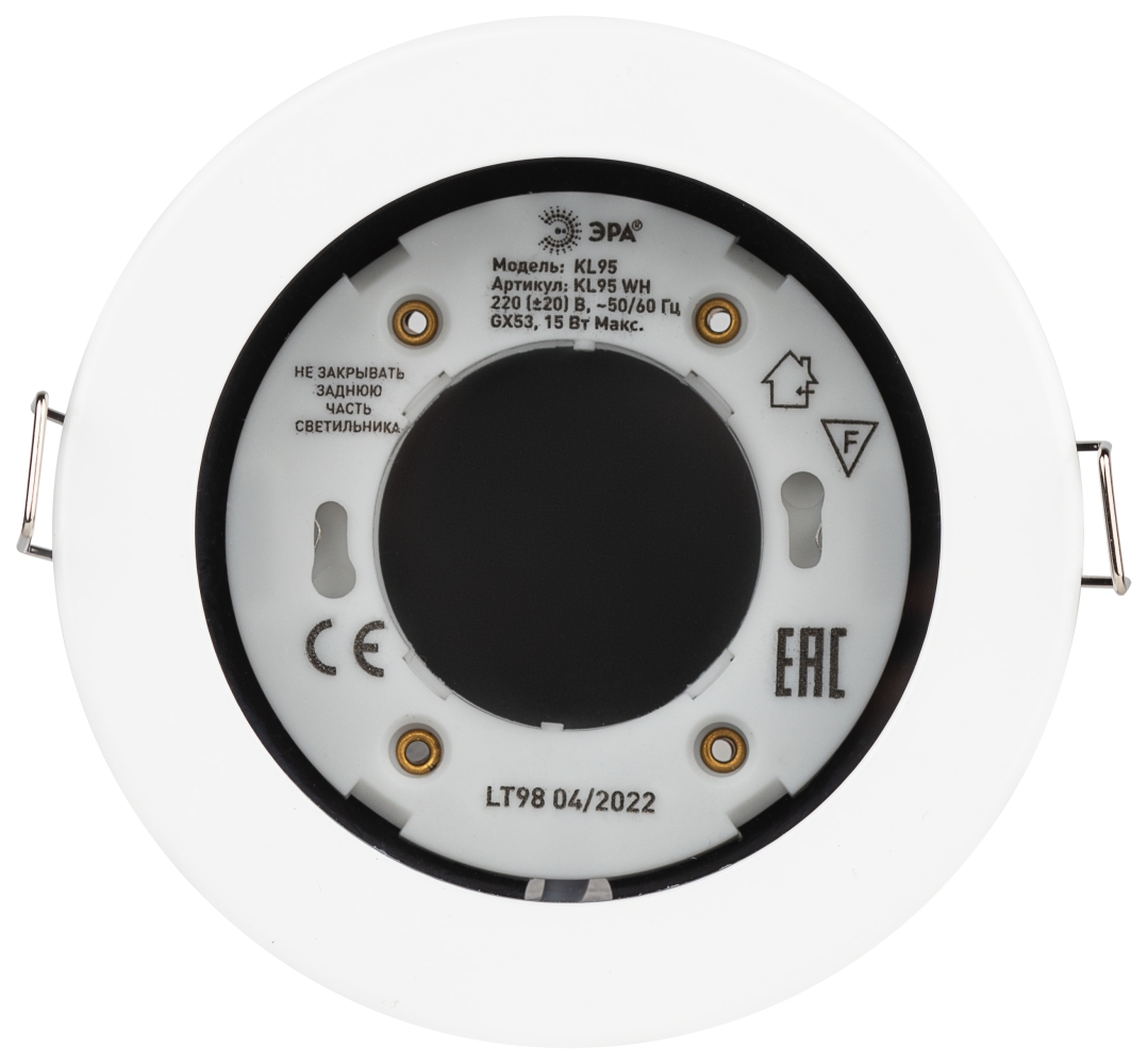 Светильник встраиваемый влагозащищенный GX53 ЭРА KL95 WH круг белый IP44