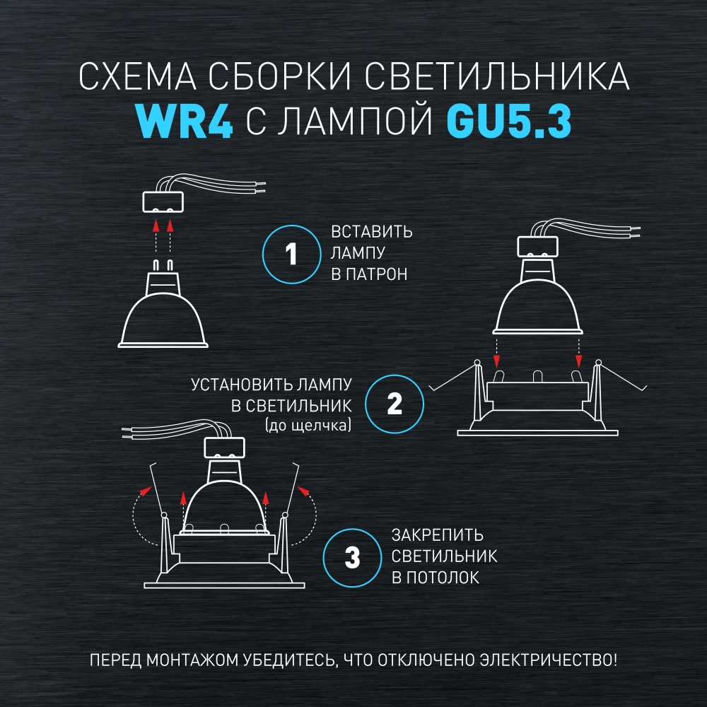 Светильник встраиваемый влагозащищенный MR16/GU5.3 ЭРА металл WR4 SBK черный матовый IP44