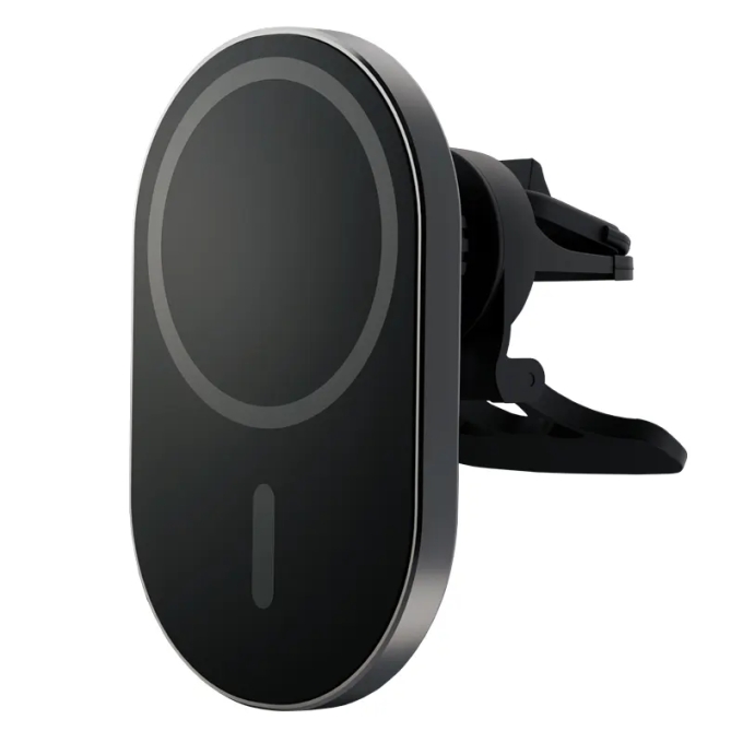 Держатель предназначен для фиксации и беспроводной зарядки телефона в автомобиле. Разработан для устройств, поддерживающих технологию беспроводного заряда (MagSafe).Устройство крепится к дефлектору автомобиля с помощью силиконовой ножки-прищепки.Телефон фиксируется с помощью магнитов внутри держателя, что обеспечивает простоту и надежность установки.Шарнирное соединение головки держателя позволяет изменять положение телефона под любым углом, обеспечивая удобство использования и оптимальный обзор экрана. Благодаря быстрой зарядке до 15 Вт смартфон будет всегда заряжен, даже в длительных поездках.