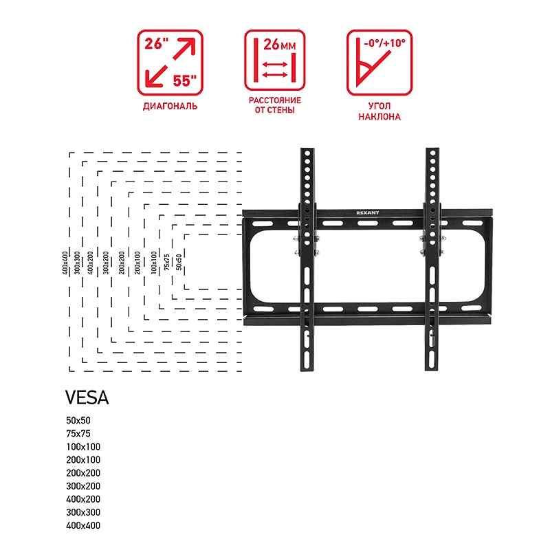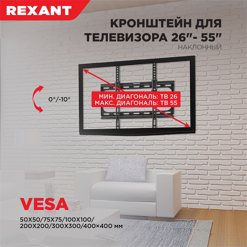 Кронштейн наклонный для телевизора и монитора 26'- 55' REXANT