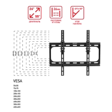 Настенный наклонный кронштейн – это оптимальное приспособление для современного дома и офиса. Продуманная конструкция кронштейна предназначена для крепления на стену телевизоров и мониторов с диагональю 26"- 55" дюймов.