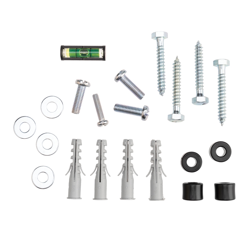 В комплекте с кронштейном поставляются все необходимые универсальные крепления. Для удобства монтажа предусмотрен встроенный строительный уровень.