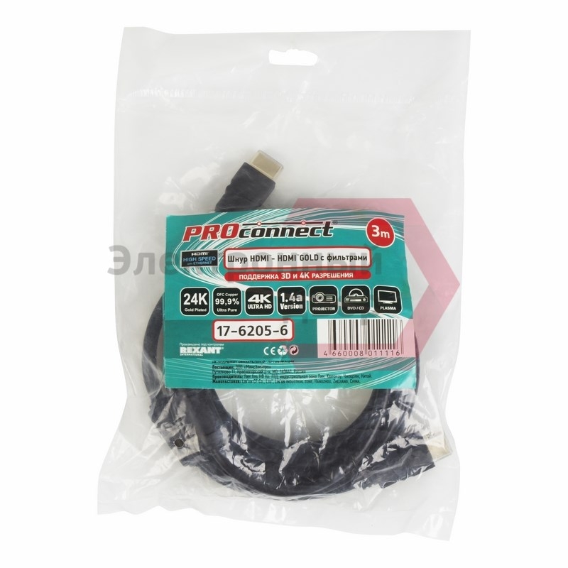 Шнур HDMI - HDMI с фильтрами, длина 3 метра (GOLD) (PE пакет) PROconnect 10/60