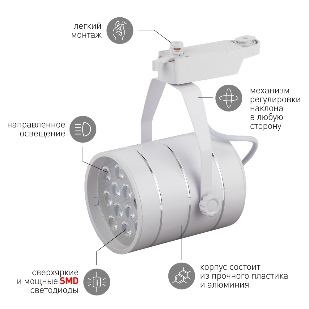 Трековый светильник TR3 - 12 WH от компании Эра расставит необходимые акценты в пространстве помещения. Он выделит конкретный объект, создать выразительную подсветку товара. Подобные светильники имеют особый механизм, который позволяет регулировать угол наклона светильника, изменяя стиль пространства в целом. В магазине такие лампы направляют посетителя к конкретному товару, а в офисных open space - разграничивают пространство. Светильник имеет показатель цветовой температуры 4000К, который позволяет человеку чувствовать себя спокойно при данном освещении. Осветительный прибор имеет продолжительный срок службы (около 30000 часов), коэффициент пульсации составляет менее 5%. Светодиодный светильник отлично дополнит любой дизайн, создаст качественные акценты. Большое разнообразие моделей трековых светильников Эра позволит подобрать наиболее подходящий вариант к конкретному помещению.