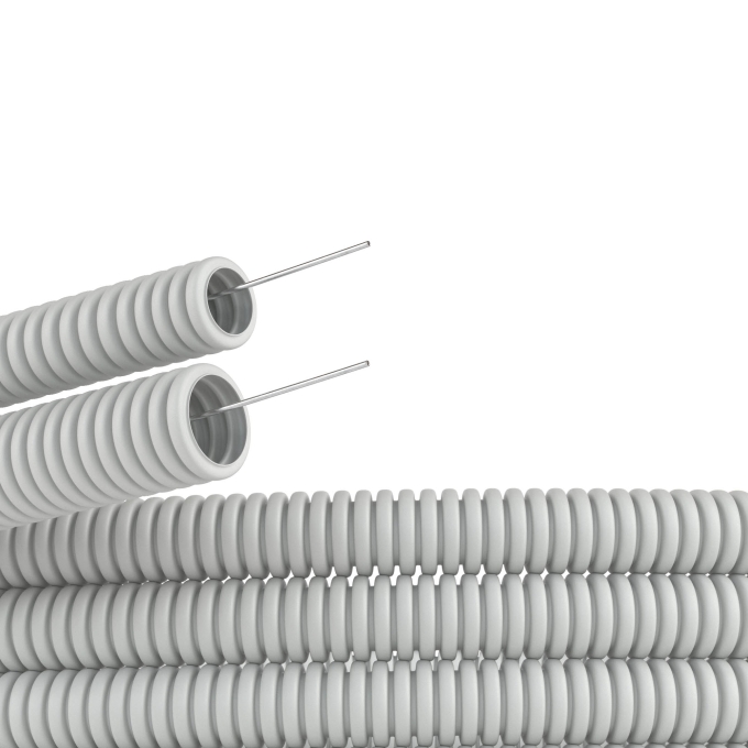 Труба гофрированная ПВХ DKC 20мм с протяжкой легкая серая (100м)
