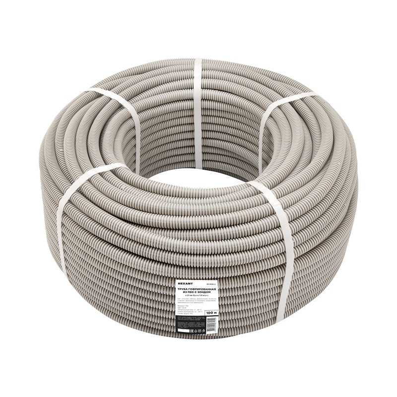 Труба ПВХ гофра REXANT с зонд. 20мм (100м) серая