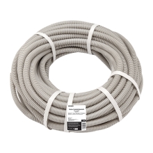 Гофрированная труба диаметром 25 мм предназначена для одиночной прокладки в ней телефонных, компьютерных, телевизионных и электрических сетей, работающих при электрическом напряжении постоянного или переменного тока величиной не более 1000 В. Сети прокладываются скрытым, полускрытым и открытым способами в стационарных электроустановках бытового и аналогичного назначения, эксплуатируемых внутри помещений. Труба обладает рельефным строением: участки с малым диаметром позволяют трубе изгибаться в любом направлении, облегчая прокладку и монтаж коммуникации, а участки с большим диаметром придают жесткость, делая конструкцию прочной и надежной. Наличие специальной металлической проволоки – зонда, позволяет быстро и легко прокладывать кабели и провода внутри трубы. Материал изготовления – высококачественная композиция ПВХ. Гофрированная труба длиной 10 м поставляется в бухте.