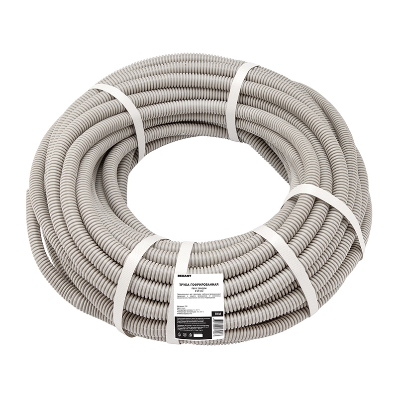Труба ПВХ гофра REXANT с зонд. 25мм (10м) серая