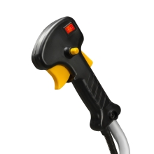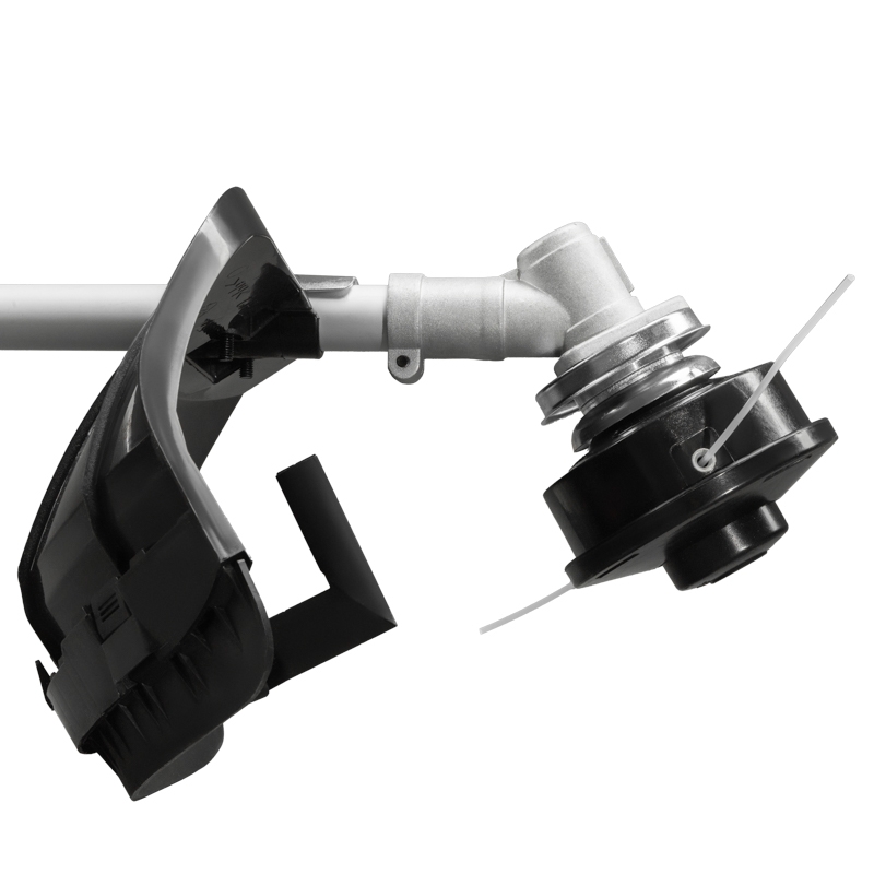 Клавиша блокировки газа предотвращает случайный запуск двигателя. Прочный кожух защищает пользователя от травы, веток и камней.