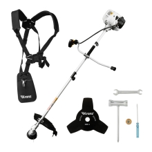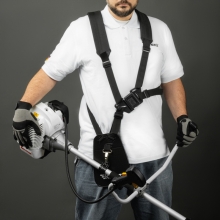 Бензиновый триммер предназначен для скашивания травы. Точная балансировка положения рукоятки, режущего инструмента и двигателя обеспечивает удобное удержание триммера даже при длительной эксплуатации. Эргономичные велосипедные рукоятки и регулируемый наплечный ремень с защитой бедра снимают нагрузку с рук пользователя, обеспечивая комфорт при работе. Для удобства и простоты управления все кнопки размещены на правой рукоятке.