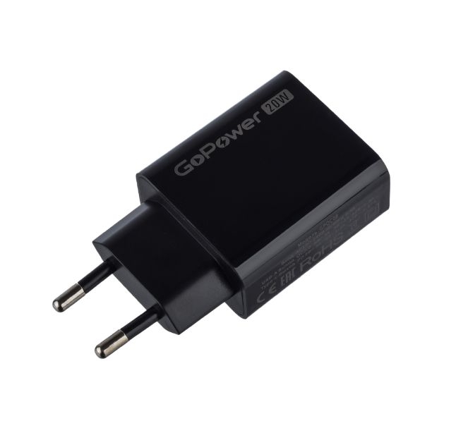 Сетевое зарядное устройство GoPower GPQC08 1USB+1Type-C 20W QC3.0 черный